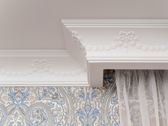 Декоративные карнизы имеют большое разнообразие по цвету, дизайну и комплектации. Багет изготавливается из ценных пород дерева, а также из полистерола, имитирующего дерево. Профильные карнизы имеют широкий спектр применения, их можно гнуть по форме сложных окон (арок, эркеров). Карниз с подъёмным механизмом используется для римских и австрийских штор.
